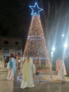 A Praça Aristide Armínio Guaraná, no centro de Ibiraçu, ganhou novos contornos e um clima especial com a chegada da decoração de Natal. Totalmente revitalizado para o período natalino, o espaço tradicional da cidade foi transformado com novos enfeites, iluminação especial, pisca-piscas e a instalação do presépio artístico “O Berço da Criação”, que já se tornou um dos principais atrativos do local.