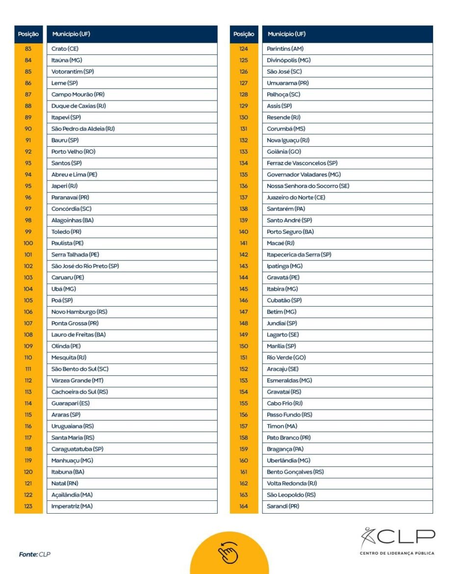 Segundo o levantamento, “ampliar a qualificação da mão de obra é fundamental para aumentar a competitividade, a produtividade da economia e o desenvolvimento econômico e social dos municípios. A importância deste pilar de capital humano se dá por sua complementaridade aos pilares de educação, uma vez que avalia a formação dos indivíduos mais diretamente voltada ao mercado de trabalho”.